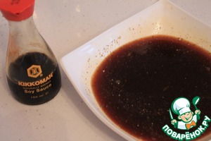 Для соуса смешиваем соевый соус Kikkoman, мед, перец, соль и апельсиновый сок.