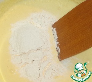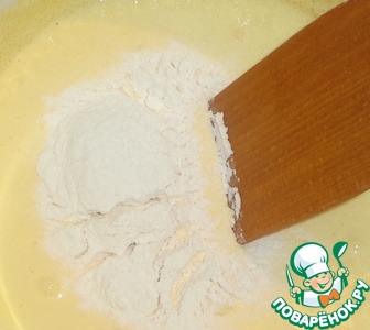 Порциями вводим в тесто муку. Перемешиваем не миксером, а деревянной лопаточкой.