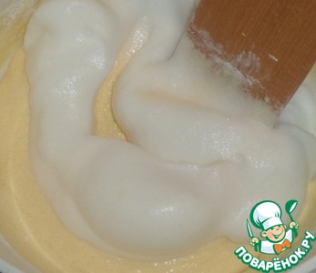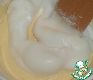 Белки взбиваем миксером в стойкую пену. Белки добавляем в тесто и хорошо перемешиваем.
