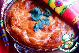 Готовому пирогу даем немного остыть. Отделяем пекарскую бумагу от пирога. Пирог порезать на кусочки и подаем к столу.