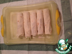 Плотно свернуть рулеты, и поставить в холодильник под прессом, хотя бы на пол-часа.