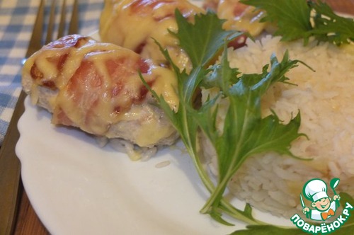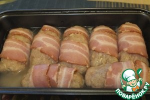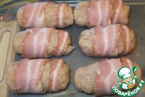 - Бекон (пластинок, на каждый биточек) — 8 шт