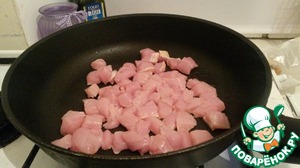 Порезать индейку (свинину, курицу - на ваш вкус!) средним кубиком. Посолить, поперчить.