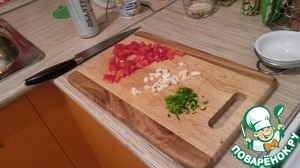 Отдельно измельчим чеснок, зелень и болгарский перец.