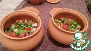 Горшочки закрываем крышкой и отправляем в духовку на 30 минут.