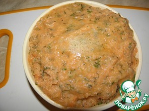 • Рыбу, лук и капусту 2 раза пропустить через мясорубку