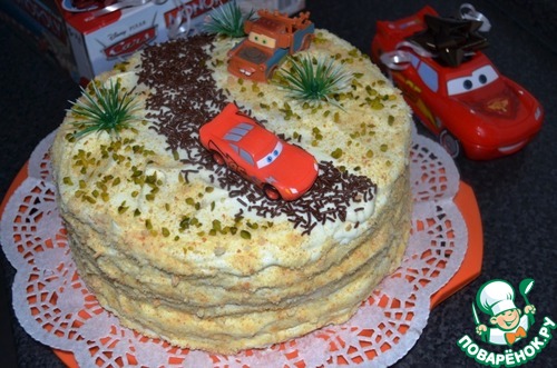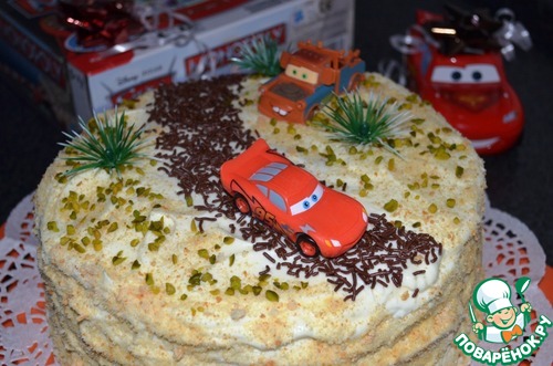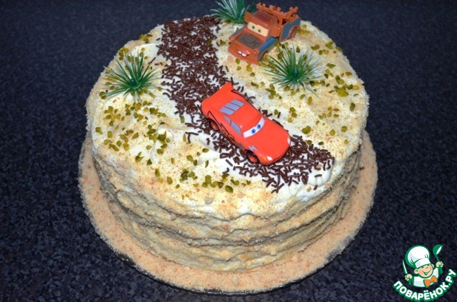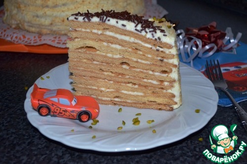 Всем приветик, хочу поделиться с вами рецептом "Медовый тортик"! Не побоюсь сказать, что это один из самых вкусных медовых тортов, которые я ела и пекла! Медовые, слоёные коржи, плюс обалденный крем со вкусом пломбира! Крем я такой среди медовых тортов не нашла, надеюсь не просмотрела! Тортик получается очень нежный! А ещё хочу предложить идею, как можно украсить детский торт тем, кто не умеет работать с мастикой! 2 года назад заказала сынуле торт, именно с этими украшениями, отложила их, а в этом году решила сама испечь, а не заказывать! Думаю машинок от Cars, у ваших сыночков достаточно!)))