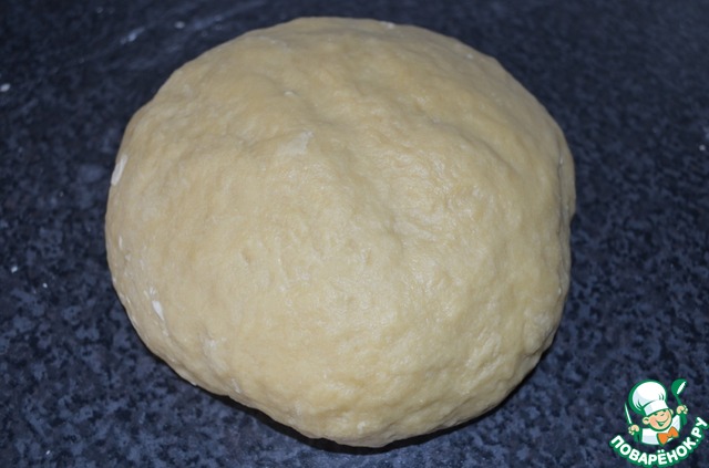 Тесто разделить на 10 частей и убрать в пакет (накрыть полотенцем), чтобы оно не так быстро остыло. -