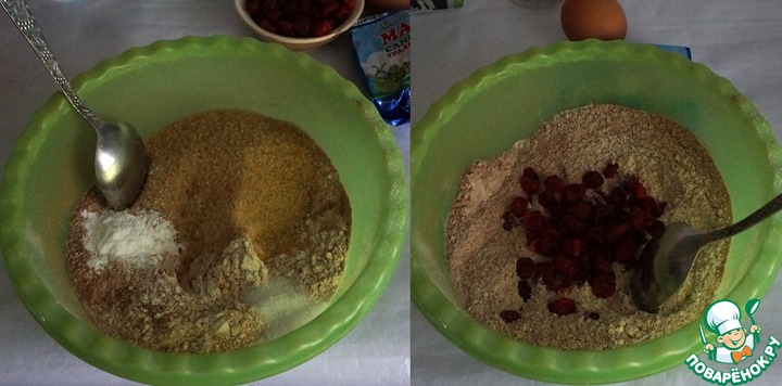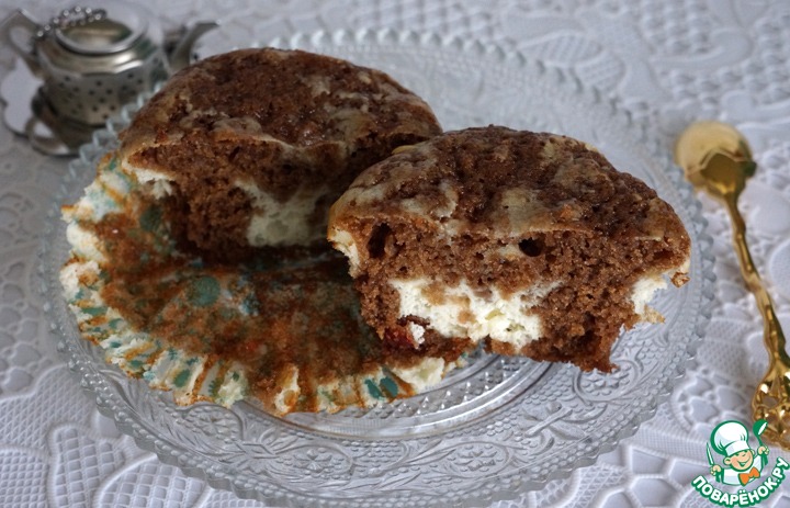 Рецепт «Шоколадно-сырные кексы с вяленой вишней»: