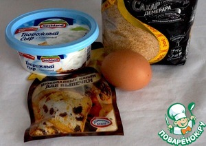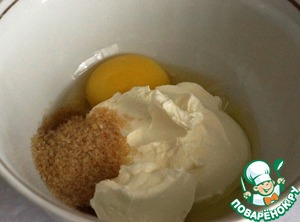 • Соединить вместе коричневый сахар, творожный сыр и яйцо, как следует перемешать.