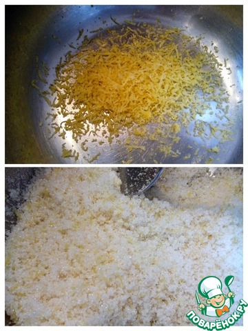 Затем к лимонной цедре добавить сахар и хорошо перемешать, чтоб объединить их (можно с помощью миксера). -