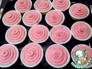 Выдавите крем поверх готовых капкейков.