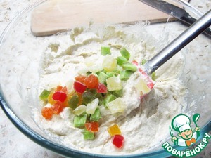А так процесс приготовления до безумия прост: тщательно смешайте все ингредиенты, кроме цукат. -