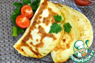 Всыпать просеянную муку и снова перемешать до однородности. Выпекать на сухой сковороде с двух сторон