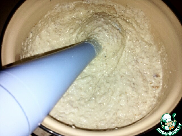 Для большей сладости (радовать себя-так уже по полной)я добавила абрикос из варенья... взбиваем, засыпаем овсянку и ваниль и снова хорошенько перемешиваем блендером до однородности
