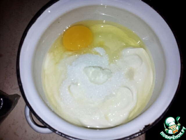 Яйца взбиваем с сахаром и щепоткой соли в пену, добавляем творог-он должен быть обязательно не кислым, мягким и не слишком мокрым
