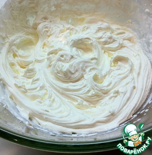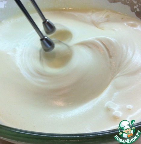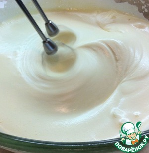 Смешаем сливки с охлаждённой лимонной смесью, затем взобьём. От лимонной кислоты смесь загустеет.