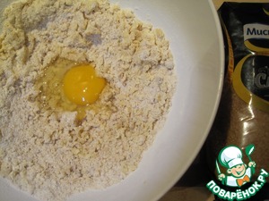 Добавим порезанное кубиками сливочное масло и яйцо. Замесим тесто.