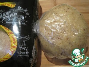 Тесто завернём в пищевую плёнку и уберём на час в холодильник.