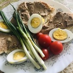 Соединить печень, яйца, лук, и сливочное масло ( оно должно быть мягким, комнатной температуры..) и пропустить через мясорубку, а еще лучше измельчить блендером. ( венчиком или миксером взбить паштет, если это будет надо.), я после блендера не взбиваю. ( пробовать на специи.) Остудить, лучше на некоторое время в холодильник.