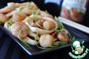 Для любителей морепродуктов и Японской кухни. Закуска готовится быстро, хороша в горячем и холодном виде. Идеальный вариант для романтического Новогоднего ужина.
