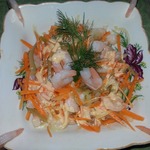 У этого простого и быстро приготовляемого салата постоянной является только пикантность вкуса. А вот оттенки меняются в зависимости от выбранных ингредиентов - креветки или кальмары, соленые или свежие огурцы. Нравится он всем родственникам и друзьям и пользуется в нашей семье огромной популярностью.