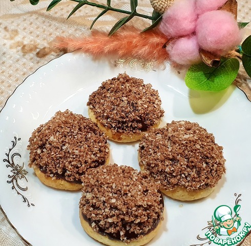 Присыпку я готовила из вафельных коржей, просто натерла их на мелкую терку, по желанию можно смешать с кокосовой стружкой или если не нашли коржей, то натрите на мелкой терке, сухое печенье, то же очень красиво и аппетитно.