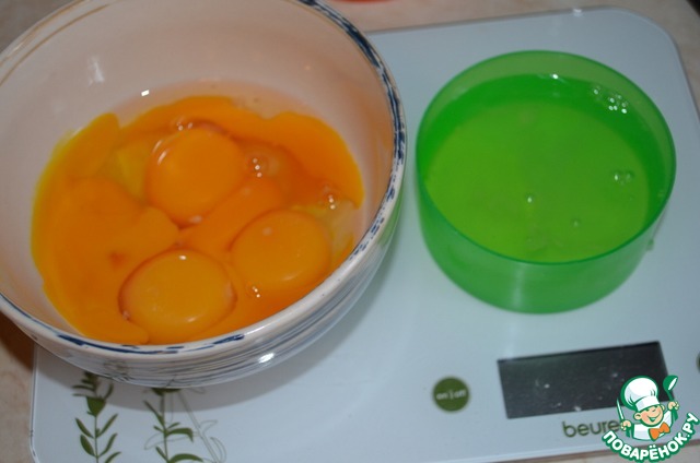 Начнем готовить макарон за 2 дня до подачи. Да. Вот так долго, зато результат- отменный. Сначала состарим белки. Состаренные белки лучше взбиваются, держат форму в пирожном. Для этого, отмерим 110г. белков и оставим при комнатной температуре на сутки. У меня на 110г. вышло белков от 4х яиц. Но, на всякий случай, я состарила белки от 5 яиц. Мало ли что-вдруг прольются...