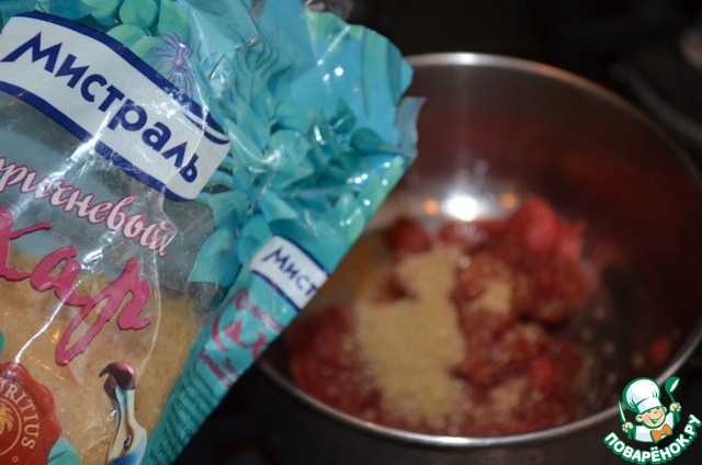 В этот же день готовим крем. У нас будет два вида крема. Один-лимонный со сливками, второй- клубничное пюре. Для крема я использую сегодня темный тросниковый сахара Демерара Fine от ТМ "Мистраль", но Вы можете использовать любой сахар, даже сах. зам. Желатиновые листочки замочим в воде. Если Вы не хотите делать лимонный крем, можете с легкостью заменить его на клубничный. Замените цедру и маршмелоу на клубничное пюре, добавьте немного больше желатина. Значит, при замене 25г. маршмелоу, добавляете 50г. клубничного пюре и капельку сверху, если хотите-вместо цедры)))Но, не забывайте прибавить желатина!!!