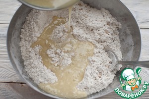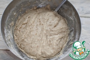 Перемешайте. Должно получиться нежное липковатое тесто.