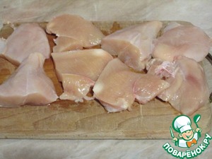 Куриное филе порезать на порционные куски