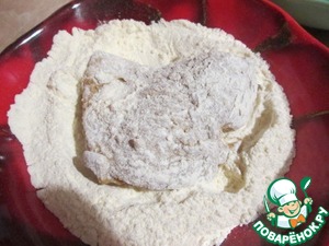 Обваливаем кусочек филе в муке