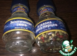 - Специи (Соль, черный молотый перец, экзотическая смесь , укроп. ) — повкусу