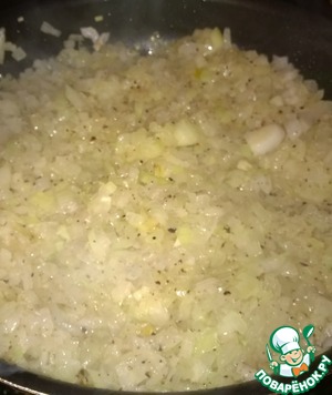 И так приступим. Нарезаем мелко лучок и обжариваем его со специями до прозрачности.