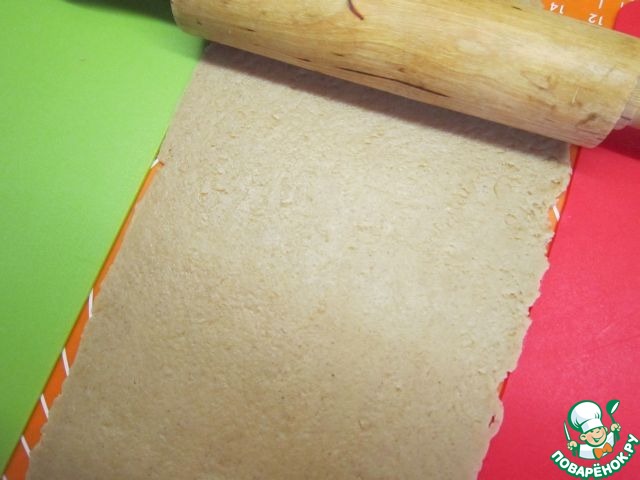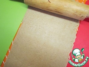 Чтоб все детали домика были одинаковой толщины, удобнее всего раскатывать тесто между двух одинаковых по толщине пластин или реек. Толщина раскатанного теста должна быть примерно 5мм.