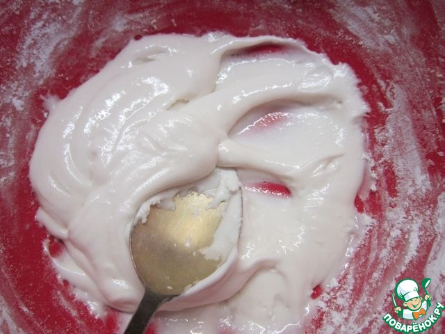 Под конец глазурь растереть ложкой до белого цвета. При желании, можно разделить глазурь на части и подкрасить красителями.