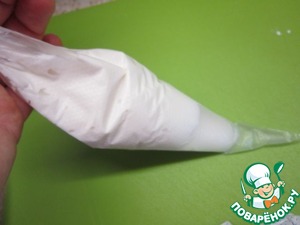 Чтобы глазурь не застывала, нужно сразу упаковать ее в кондитерский мешок.