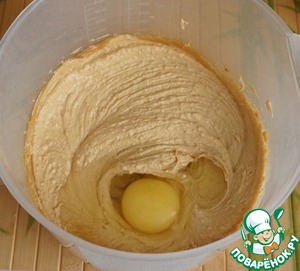 • Добавить яйцо и взбить, недолго, просто что бы хорошо смешалась масса.