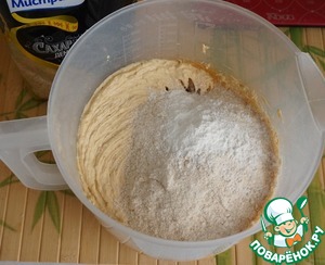 • Добавить полбовую муку и разрыхлитель.
