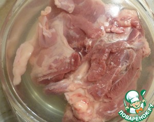 Опускаем в солевой раствор мясо на 2-3 часа