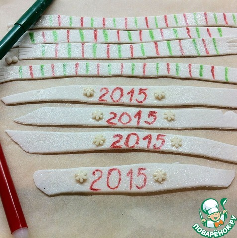 Пока заготовки остывают, сделаем "запчасти" для снеговиков. Я их сделала из белой мастики и разрисовала пищевыми фломастерами.