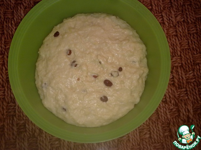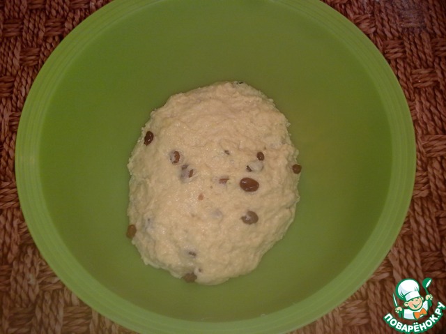 Затем - сливочное и горчичное масло - тот самый секрет, о котором я говорила. О его значении я расскажу чуть ниже. Затем - изюм, все хорошо перемешать руками.