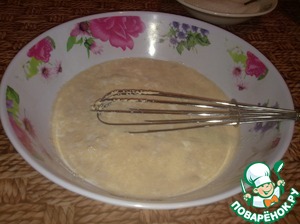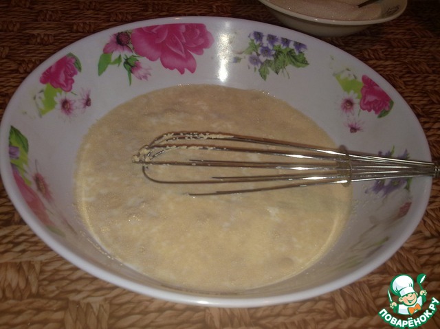 Дрожжи высыпать в глубокую миску, туда же вылить теплое молоко. Перемешать венчиком.