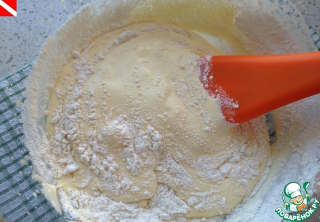 Всыпаем сухие ингредиенты аккуратно перемешиваем.