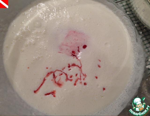 P.S. совсем глазомер подводит - разделила сливки не ровно пополам, клубничного мусса получилось немного больше. Заморозила, вышло отличное мороженое!