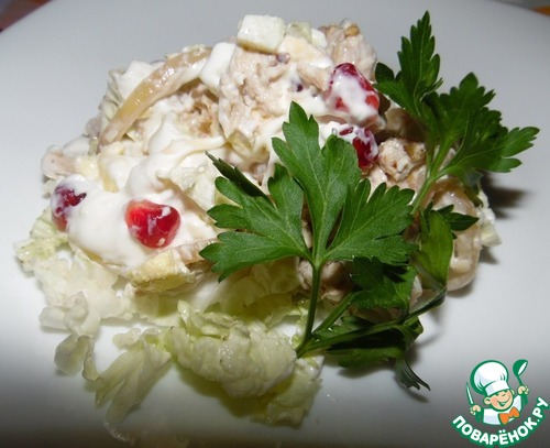 Предлагаю Вашему вниманию рецепт полюбившегося в нашей семье очень сочного, нежного салатика! В предверье Рождества и Нового Года я думаю он будет весьма актуален!
