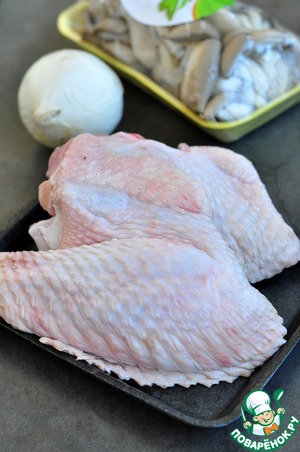 Ингредиенты для «Крыло индейки, фаршированное печенью и грибами»: