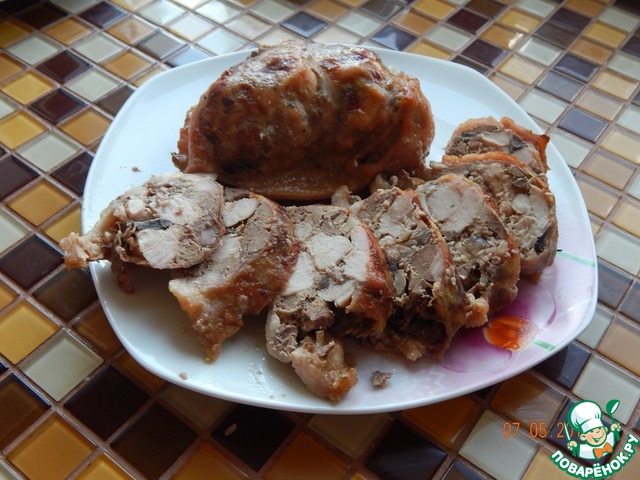 Рецепт «Крыло индейки, фаршированное печенью и грибами»: