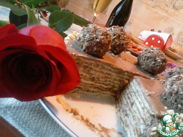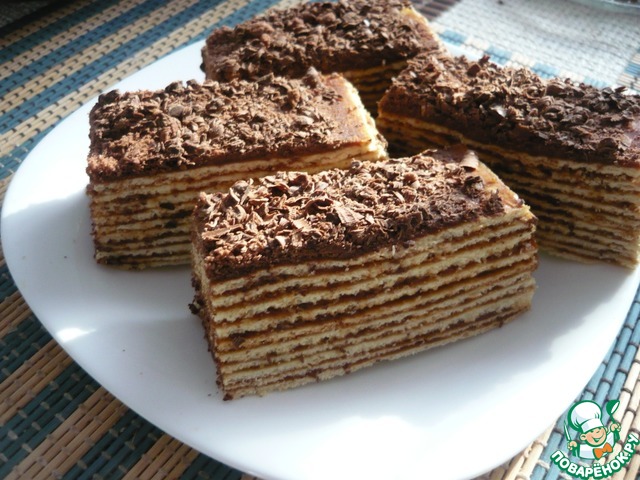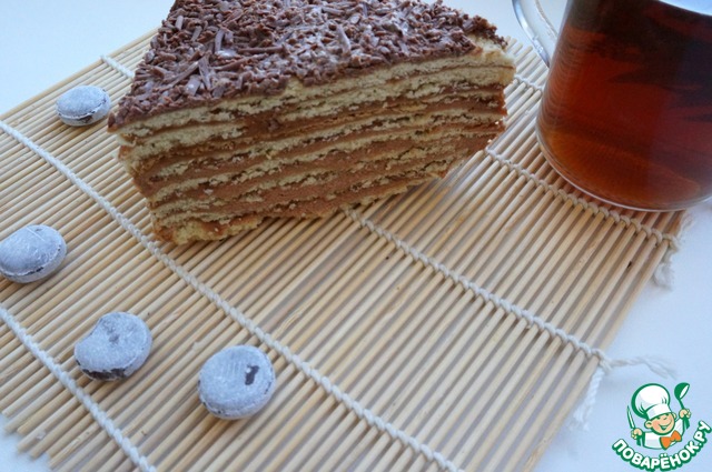 Это армянский рецепт десерта "Микадо". Тонкие песочные коржи прослоены нежным кремом на основе варёной сгущёнки и всё это под слоем тёртого шоколада! Эти пирожные стали традиционным угощением в моей семье. Делаю "Микадо" я раз в год, на годовщину нашей с мужем свадьбы. Но сегодня эти пирожные я дарю доброму человечку, замечательному Поварёнку!