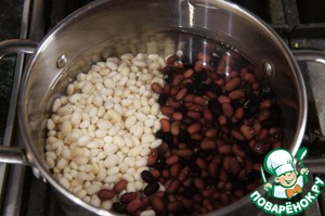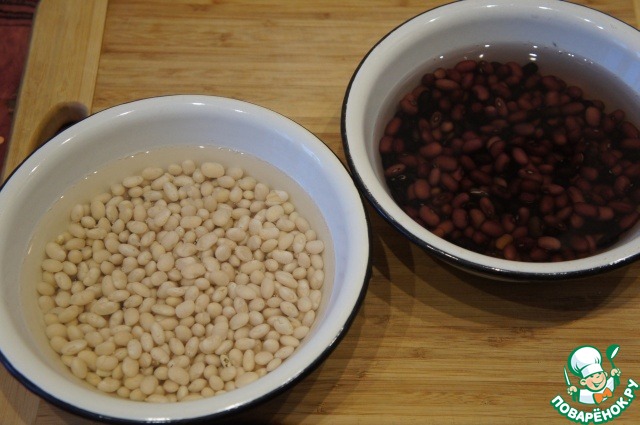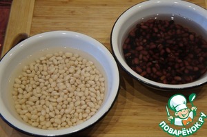Накануне оба вида фасоли промыть и залить холодной водой на 10-12 часов.